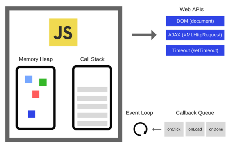 이것을 이해하기위해 Call stack, Event Loop, Callback Queue(Event Queue)에 대해 자세히 알아보자.